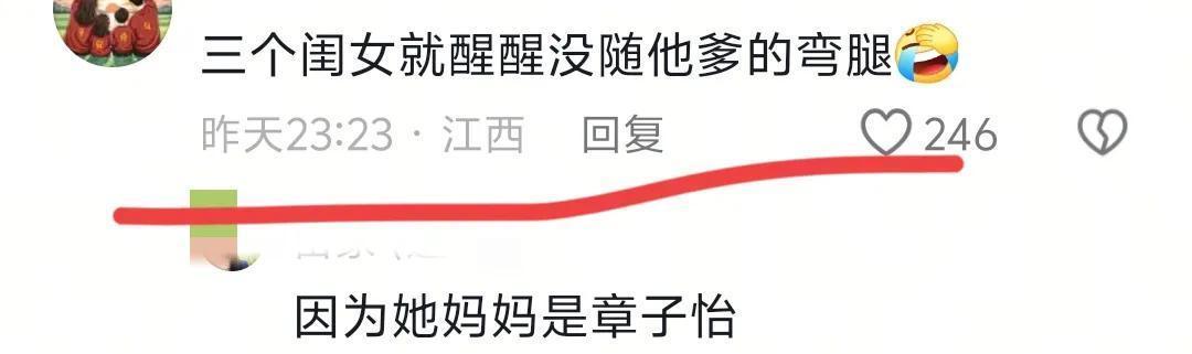 网友们齐说,除了醒醒腿不弯,其他几个妮儿儿齐遗传了她们爹的“弯腿”