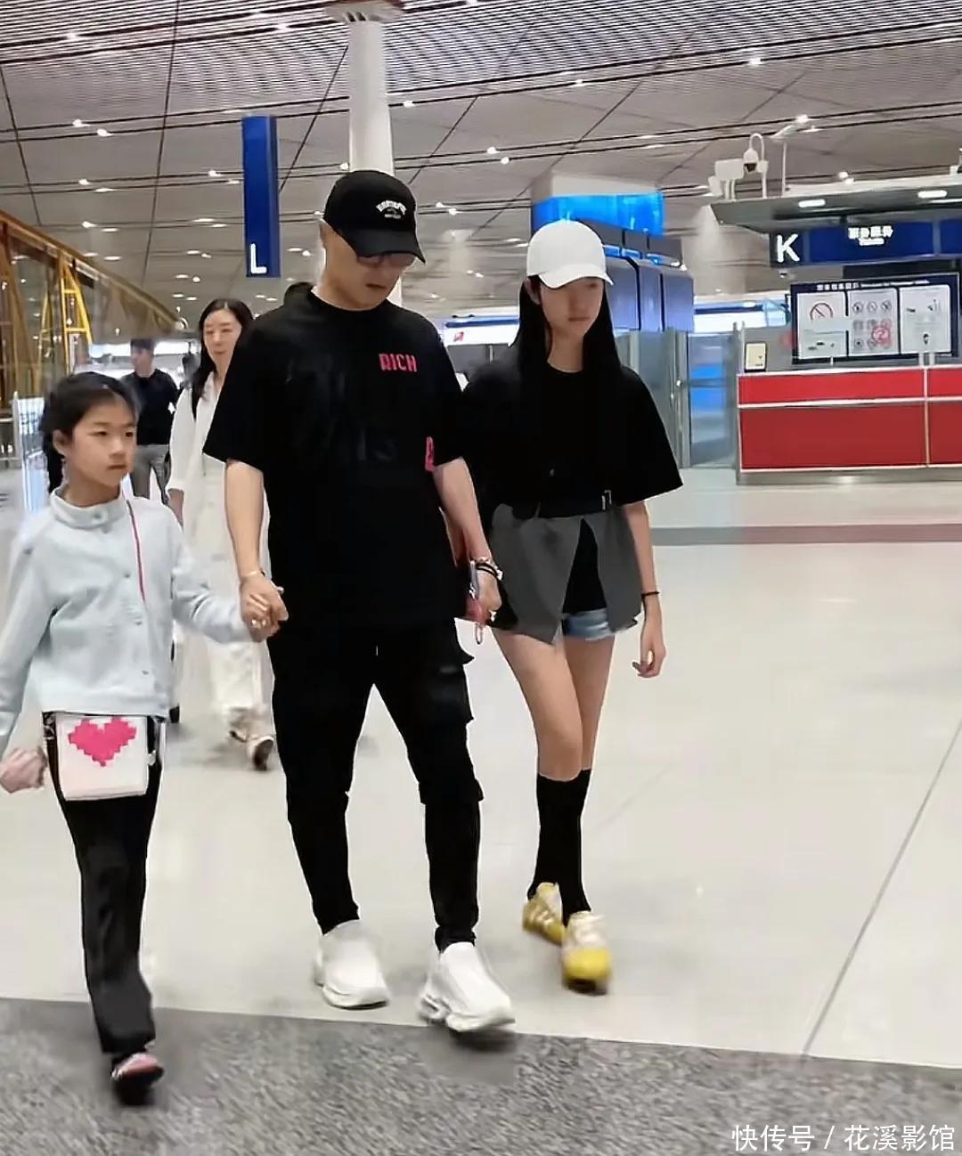 7.27日,6天的日本之旅归天,汪峰又带着几个孩子返归国内,汪峰如故那身行头,一稔玄色半袖和玄色的金莲裤,一手牵着一个女儿