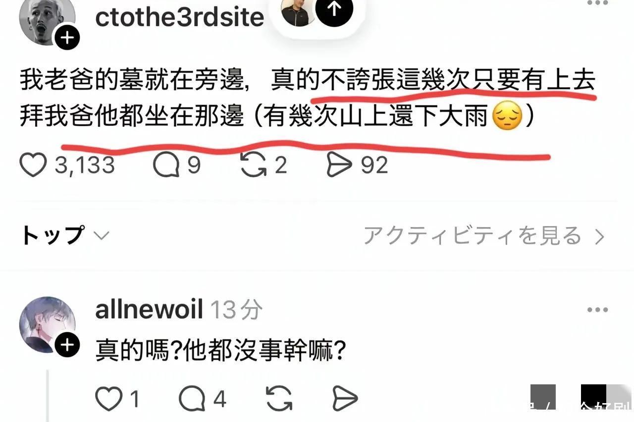 还有网友暗意,我方父亲的墓碑也在何处,每次上去祭拜的时刻,具俊晔王人在,还有几次下雨他也坐在那里。